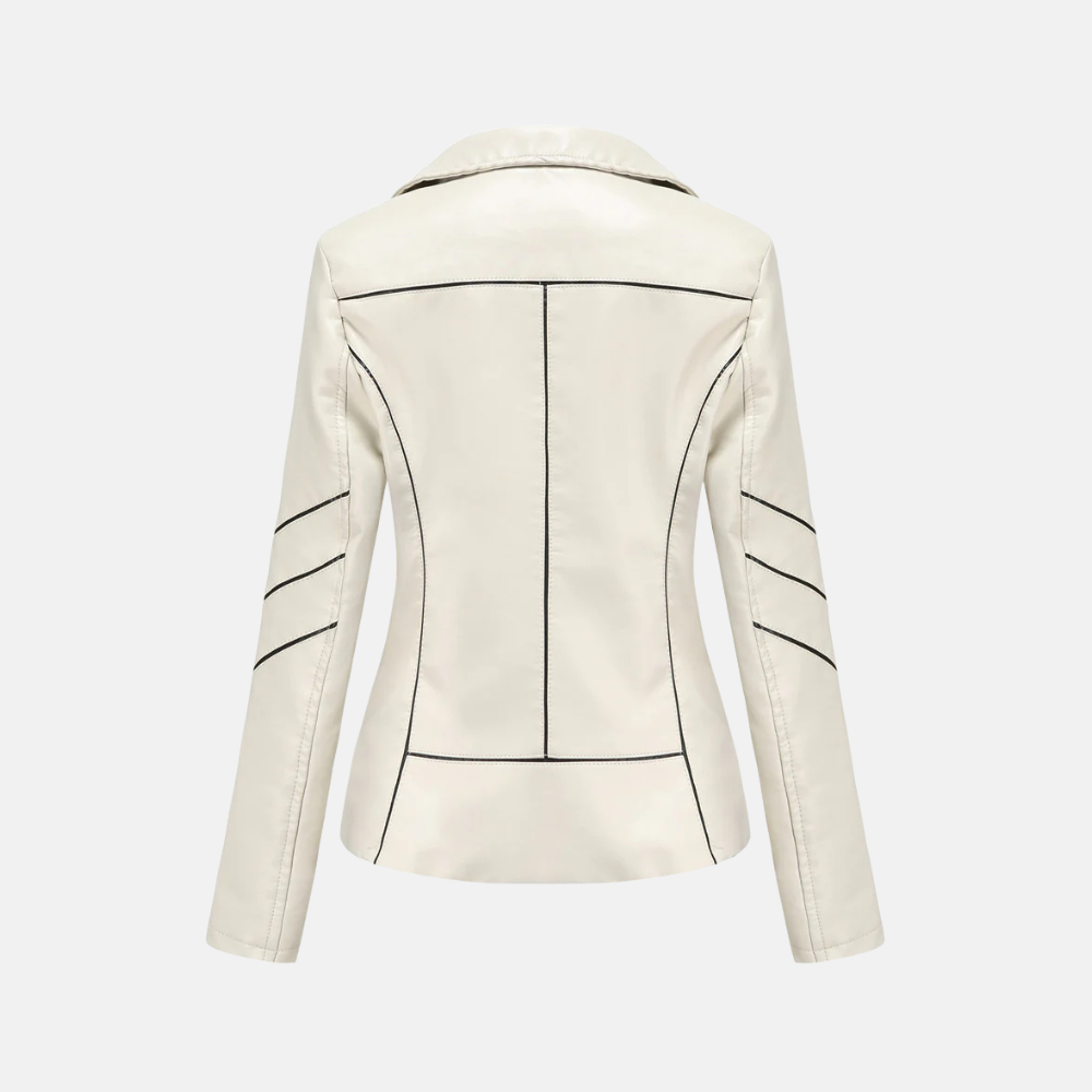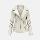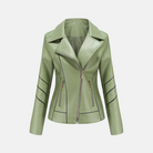 Women's Motorcycle Jacket – Slim Fit – Faux Leather – Asymmetrical Zipper – Quilted Sleeves