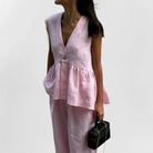 Women's Suit Set – Sleeveless Vest With Peplum – High Waist Wide Legs – Breathable Cotton
