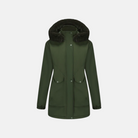 Women's Parka Coat – Mid-Length – Adjustable Waist Drawstring – Hood with Faux Fur – Side Pockets