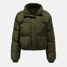 Women's Puffer Jacket – Oversized Fit – High Collar – Cropped With Drawstring Hem