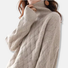 Ladies Pullover Sweater – Oversized Fit – Ribbed Turtleneck – Chunky Wool Texture