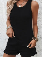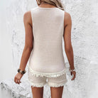 Women's Set – Knitted Sleeveless Top and Shorts – Relaxed Fit – Fringe Trim