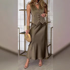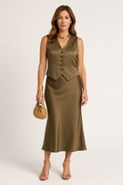 Discover the Women's Vest and Midi Skirt Set – Satin Look – Slim Fit – Elegant Occasions, a stylish two-piece women's set perfect for formal events. This slim fit satin-look set with a sleeveless vest and midi skirt offers an elegant and timeless look. Ideal for sophisticated evenings.