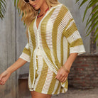 Women's Set of Crocheted Shirt and Shorts – Relaxed Fit – Openwork – V-neck – Elastic Waist