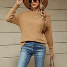 Women's Sweatshirt – Loose Fit – Ribbed Boat Neck – Long Sleeves – Knitted