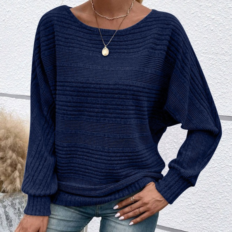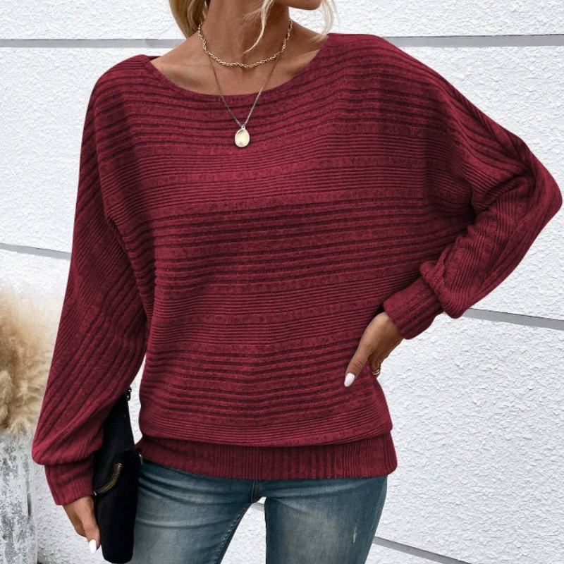 Women's Sweatshirt – Relaxed Fit – Dolman Sleeves – Ribbed Texture – Ribbed Cuffs