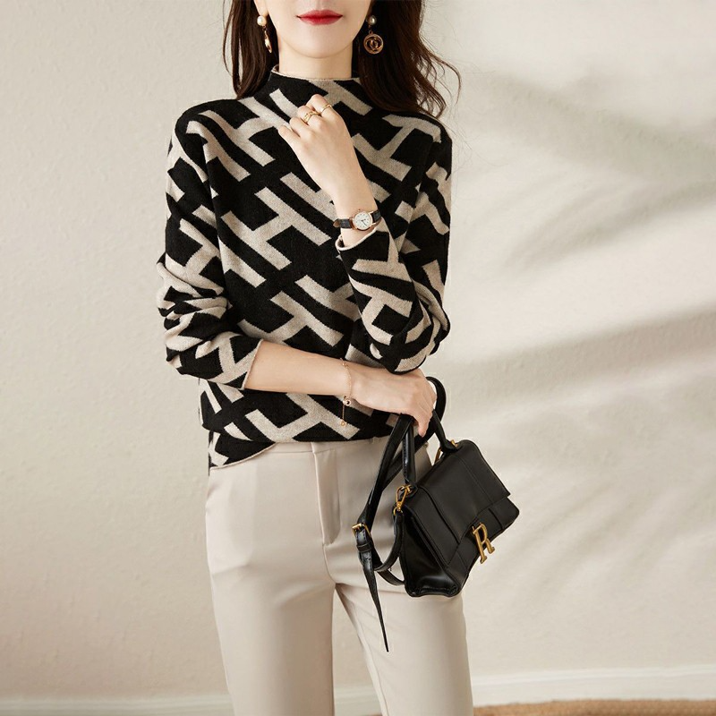 Women's sweatshirt – Wool-mix knit – Regular fit – Turtleneck – Jacquard pattern