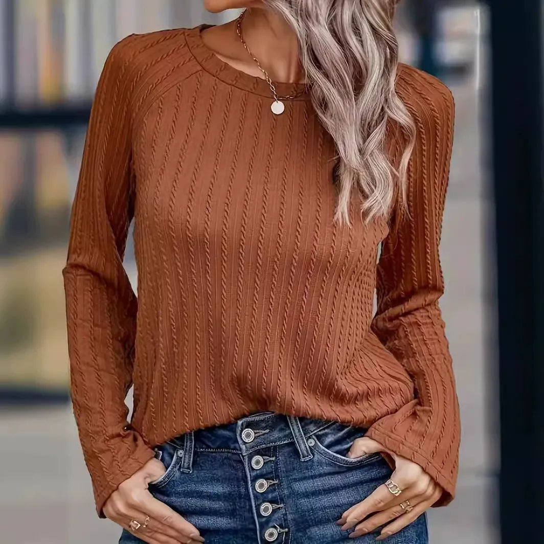Women's T-shirt – Ribbed – Relaxed Fit – Long Sleeves – Round Neck