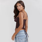 - Design: Slim Fit, Cropped, with lace details and spaghetti straps