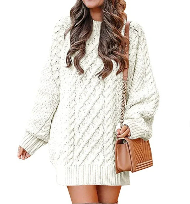 Ladies sweater dress – Wool mix – Oversized fit – Cable knit – Midi length – Long sleeve