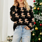 Ladies Sweater – Loose Fit – Knitted Fabric – Deer Pattern – Long Sleeves – Round Neck