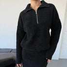 Women's Sweater – Oversized Fit – Woolblend – Half Zip – High Collar – Hip Length