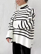 Ladies Sweater Turtleneck – Oversized Fit – Knitted – Striped with Ribbed Texture