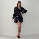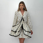 Ladies Two-Piece Dress Set – Chiffon – V-Neck – Ruffled Skirt – Tailored Fit