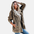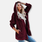 Women's Hooded Cardigan – Sherpa Fleece – Oversized Fit – Open Front with Pockets