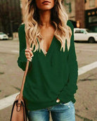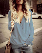 - Design: Knitted wrap style, deep V-neck, long sleeves, relaxed fit