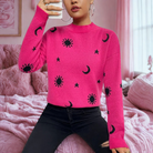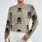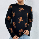 Women's Sweater – Relaxed Fit – Jacquard Knit – Round Neck – Mushroom Design