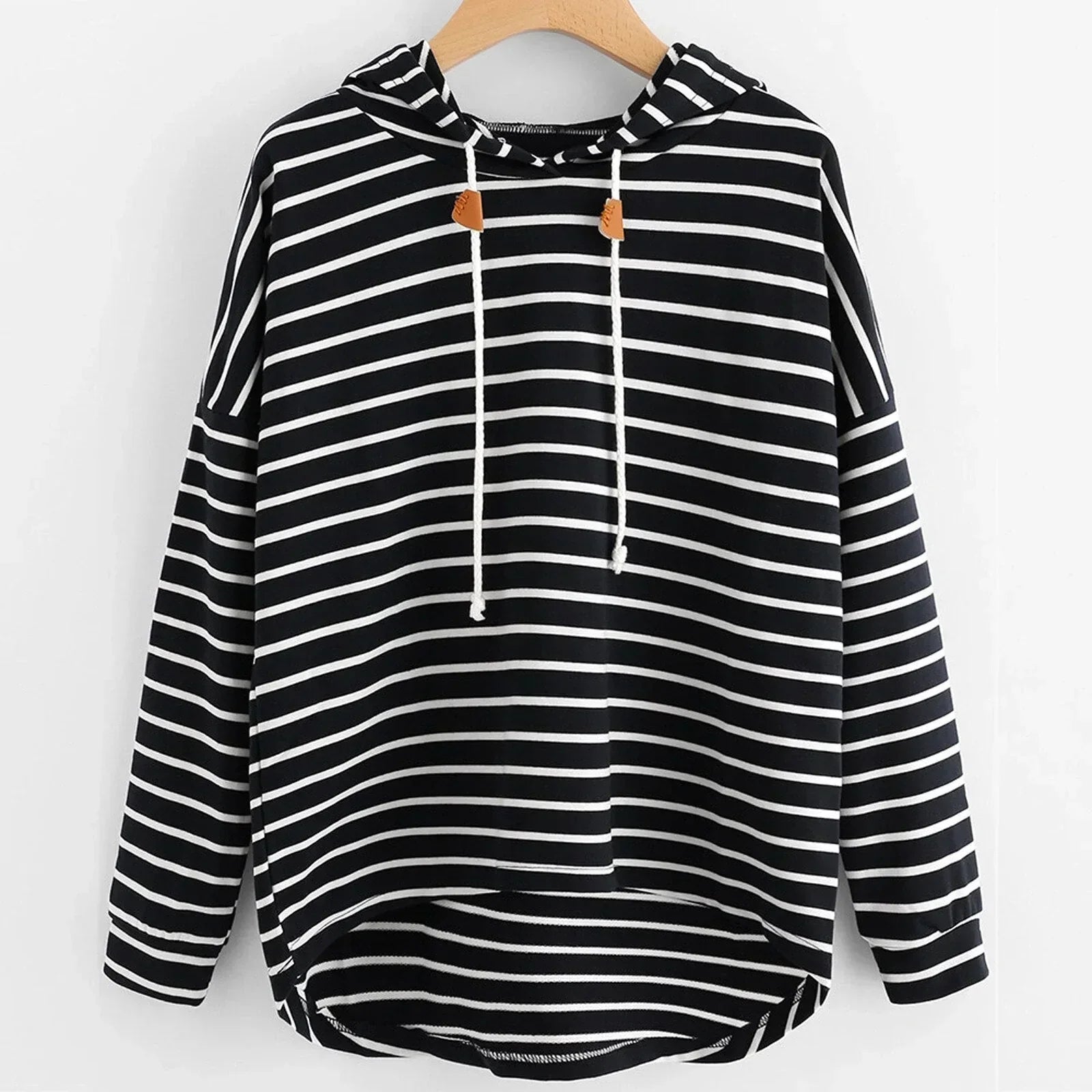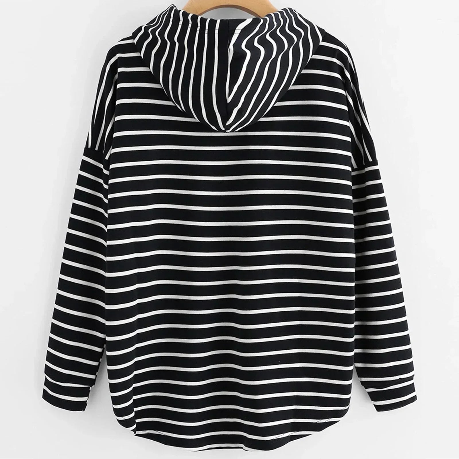 Women's Hoodie - Striped Design - Long Sleeves - Comfortable Fit - Breathable Cotton