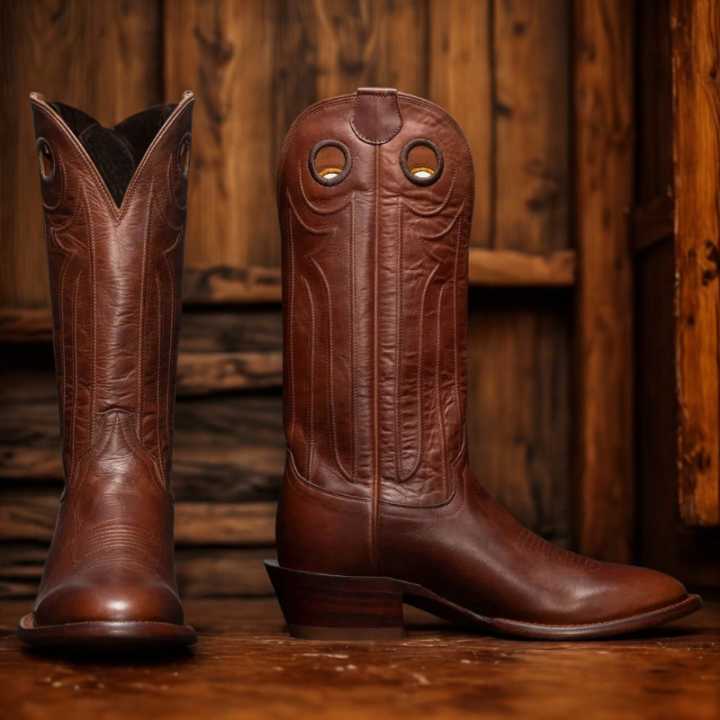 Men's Cowboy Boots – Mid-Calf – Leather Texture – Square Toe – Heel – Stitching