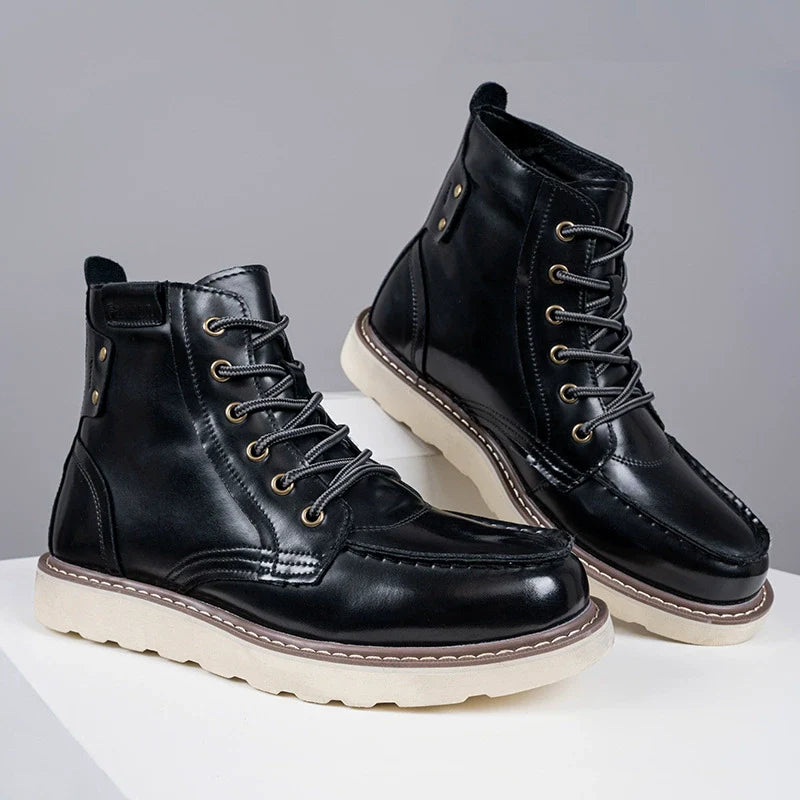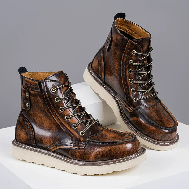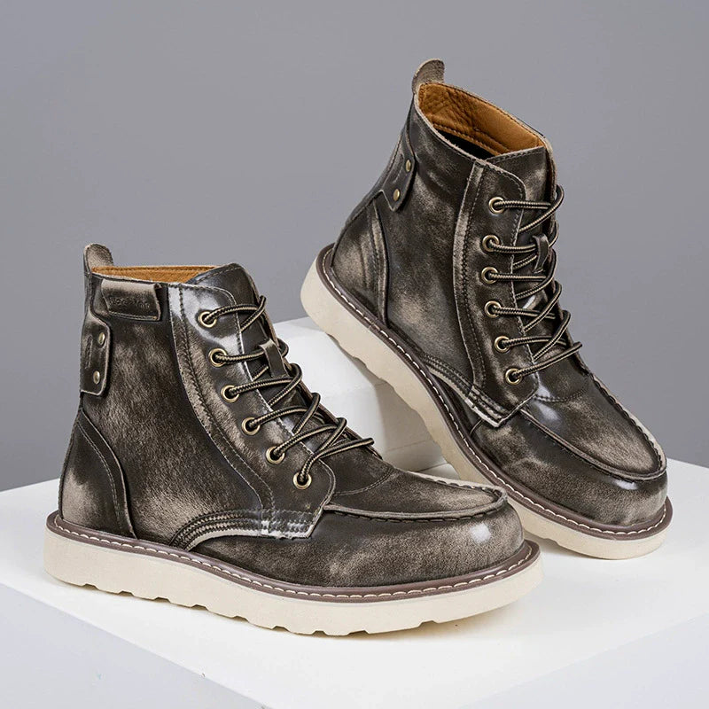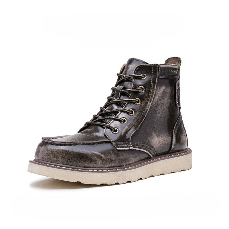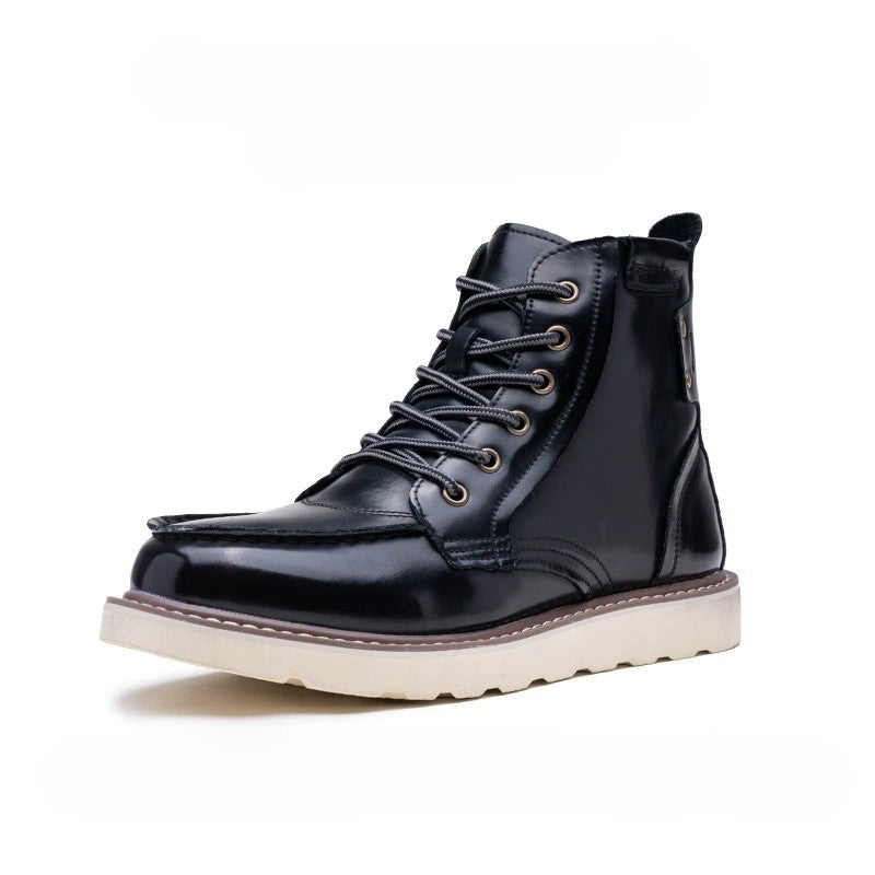 - Design: Classic lace-up with moc-toe stitching and a robust lug sole