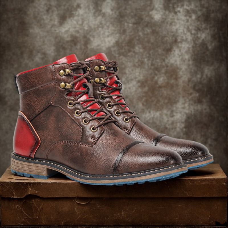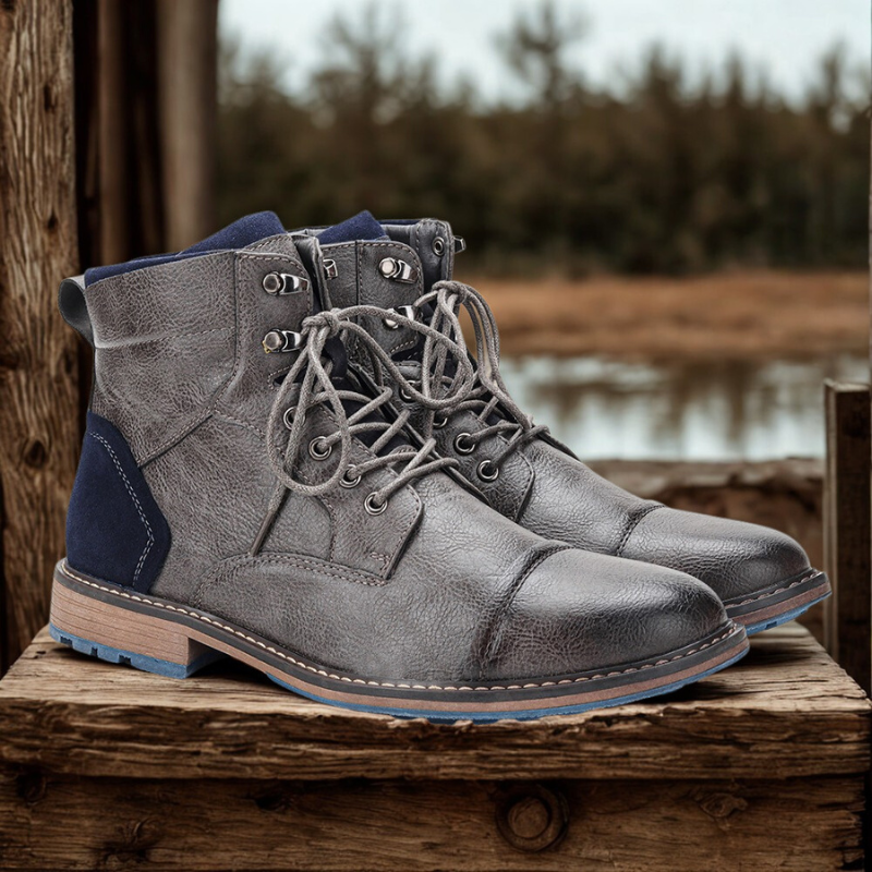 Men's Ankle-high Boots – Leather Look – Cap Toe – Lace-up Closure – Zip Closure – Profile Sole