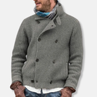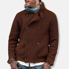 Men's Knitted Jacket – Relaxed Fit – Double Button Closure – High Collar – Ribbed Texture
