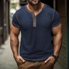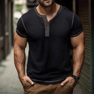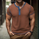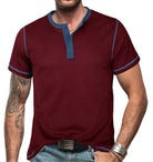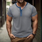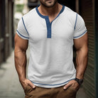 Men's Henley Shirt – Slim Fit – Cotton – Short Sleeves – Casual Rib Texture