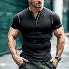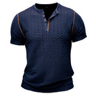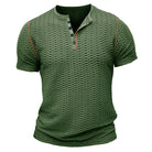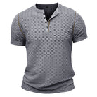 Men's Henley Shirt – Slim Fit – Textured Fabric – Short Sleeve – Breathable Design