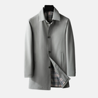 Elevate your style with the Men's Coat – Tailored Fit – Wool Blend – Front Buttons – Checked Lining – Formal. This elegant tailored-fit wool-blend coat offers timeless class with its front buttons and stylish checked lining, perfect for the modern man seeking comfort and formal refinement.