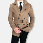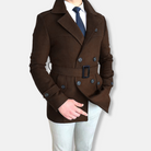 Men's Short Coat – Wool – Tailored Fit – Double-Breasted – Belt – Epaulettes