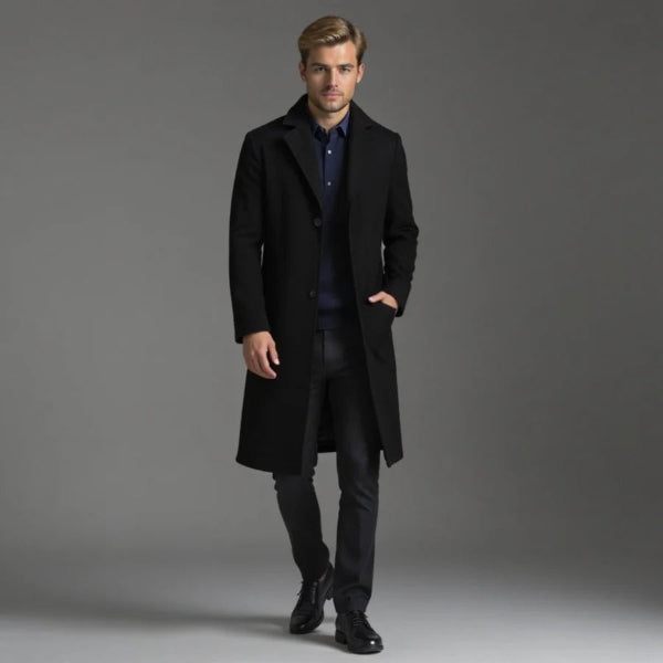 Men's Long Coat – Wool Blend – Tailored Fit – Single-breasted – Formal Business Model
