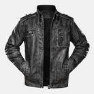 Men's Leather Jacket – Slim Fit – Washed Look – Ribbed Cuffs – Multiple Pockets