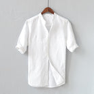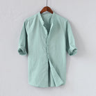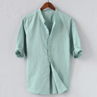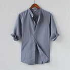 Men's Shirt – Linen Blend – Relaxed Fit – Rolled Up Sleeves – Mandarin Collar