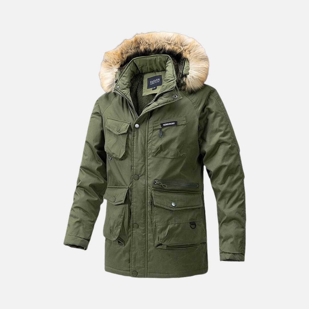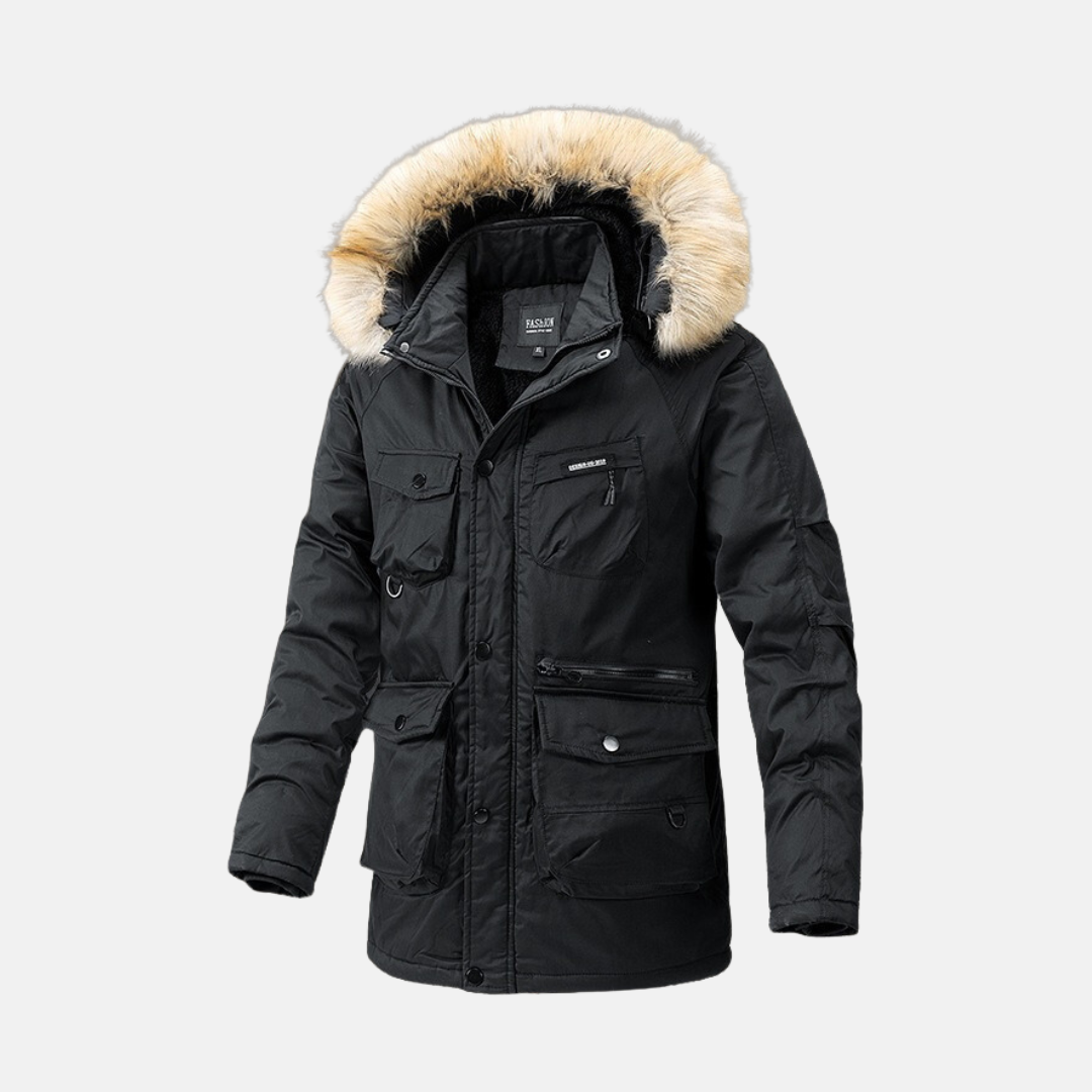Men's Parka Coat – Water-Repellent Fabric – Loose Fit – Removable Fur Collar – Multiple Pockets
