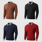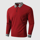 Men's polo with long sleeves – Regular fit – Ribbed – Check-detail collar and cuff