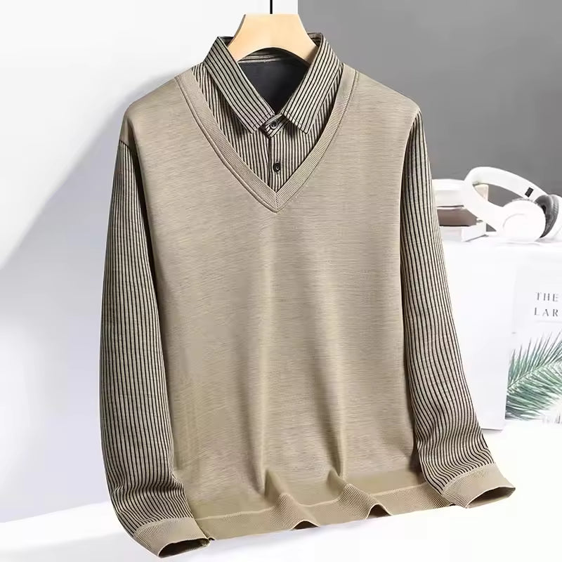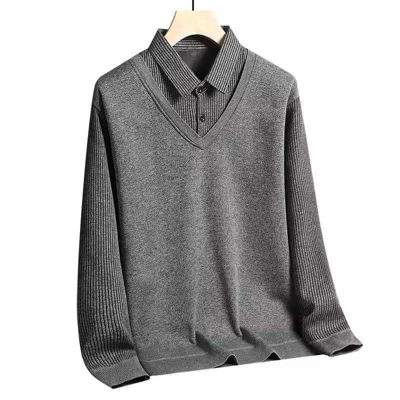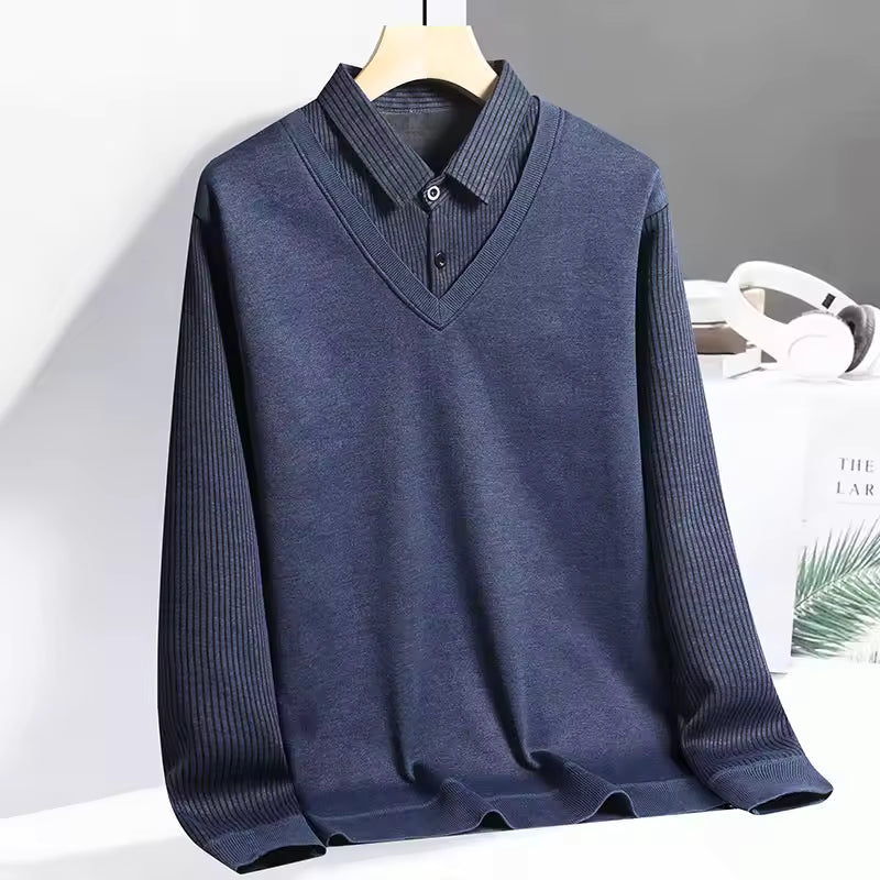 Men's Polo Sweatshirt – Regular Fit – Knitted – V-neck with Collar – Business Casual