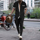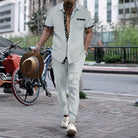 Men's Set – Casual Fit – Cotton Look – Button Shirt – Drawstring Pants