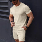 Men's Set T-shirt and Shorts – Regular Fit – Textured Knit – Drawstring Waist