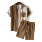 Men's Set – Waffle Fabric – Relaxed Fit – Shirt with Button Closure & Shorts with Drawstring