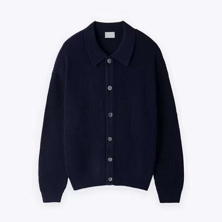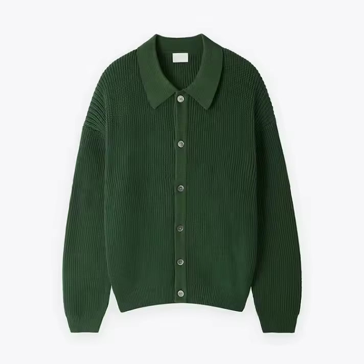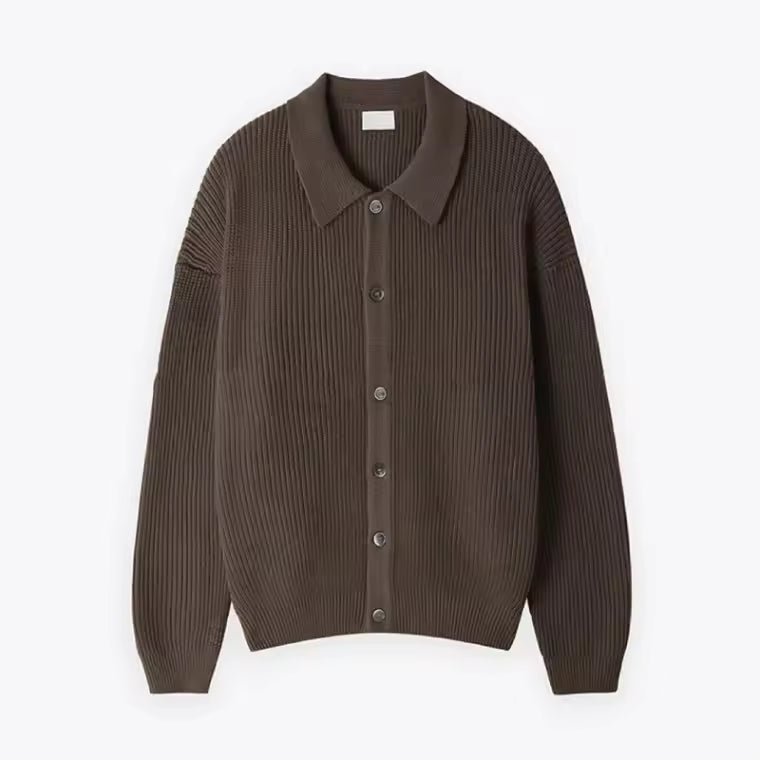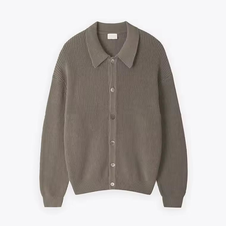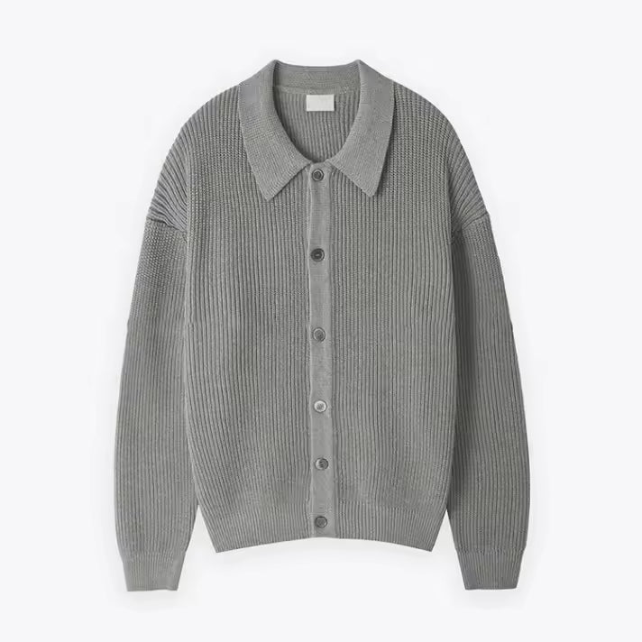 Men's Cardigan – Oversized Fit – Knitted Wool Blend – Ribbed Texture Button Closure