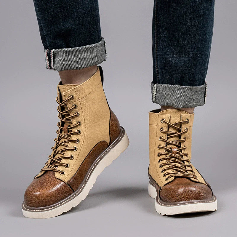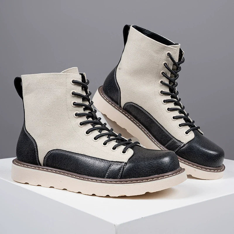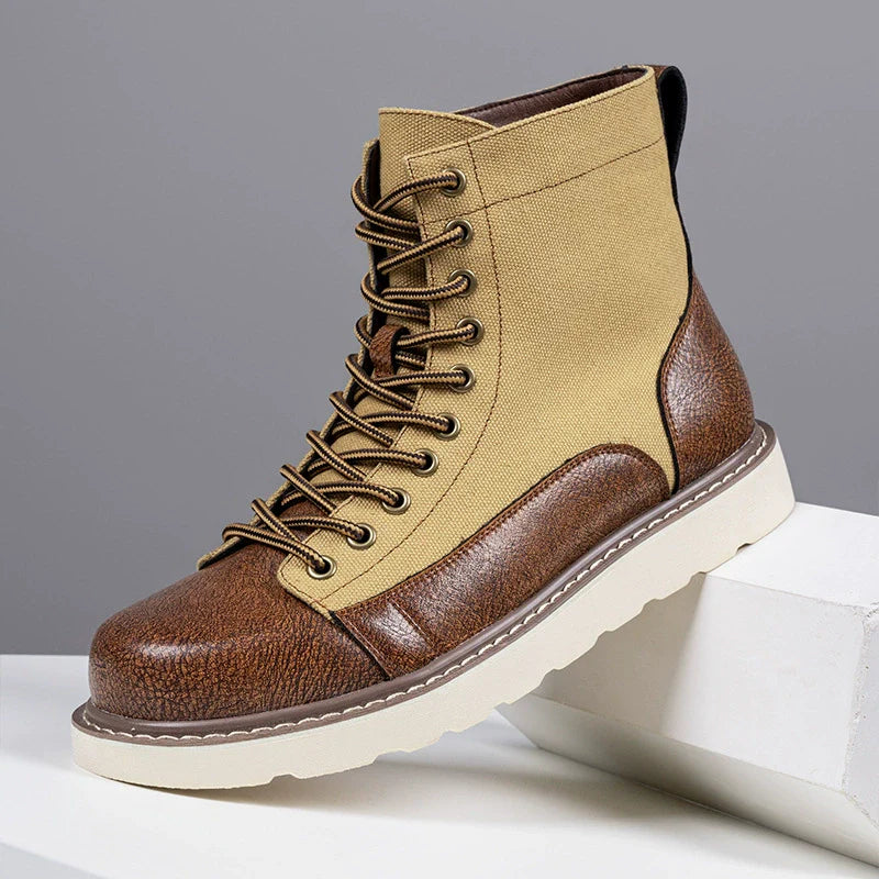 Men's Lace-Up Boots – Mid-Top Model – Sturdy Canvas Mix – Treaded Sole