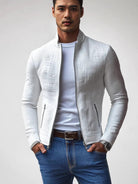 Discover the Men's Jacket – Slim Fit – Textured Design – Stand-up Collar – Zip Closure – Business Casual. This modern, stylish men's jacket with a unique texture and slim fit offers ultimate comfort and a refined look for any occasion, from the office to casual. Perfect for the modern man.