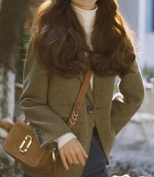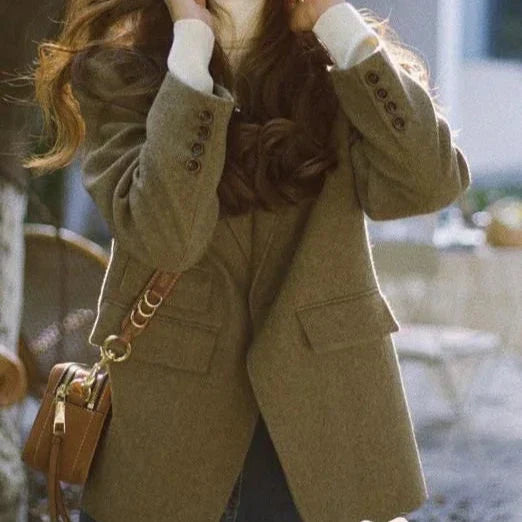 Long Vintage Blazer with Notched Lapel – Available in Plus Sizes
