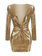 Sequins Long Sleeves Fold Mini Dress