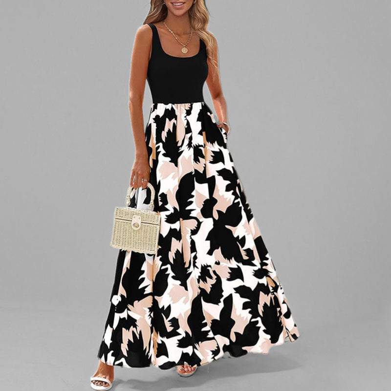 Women's maxi dress – Sleeveless – High waist – A-line fit – Graphic print