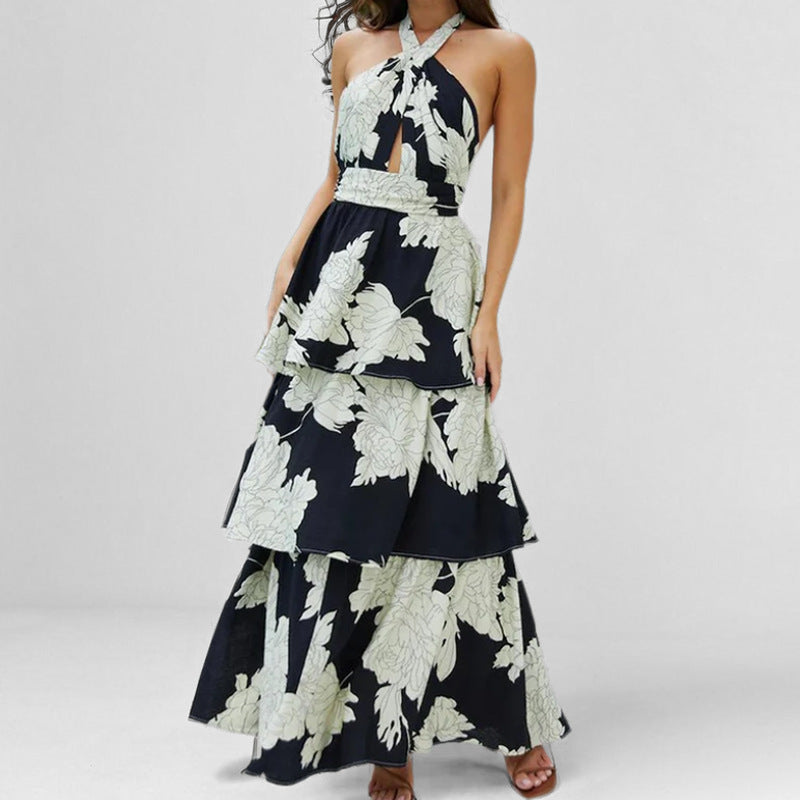 Women's Maxi Dress – Halter Neck – Layered Skirt – Keyhole Detail – Breezy Fit