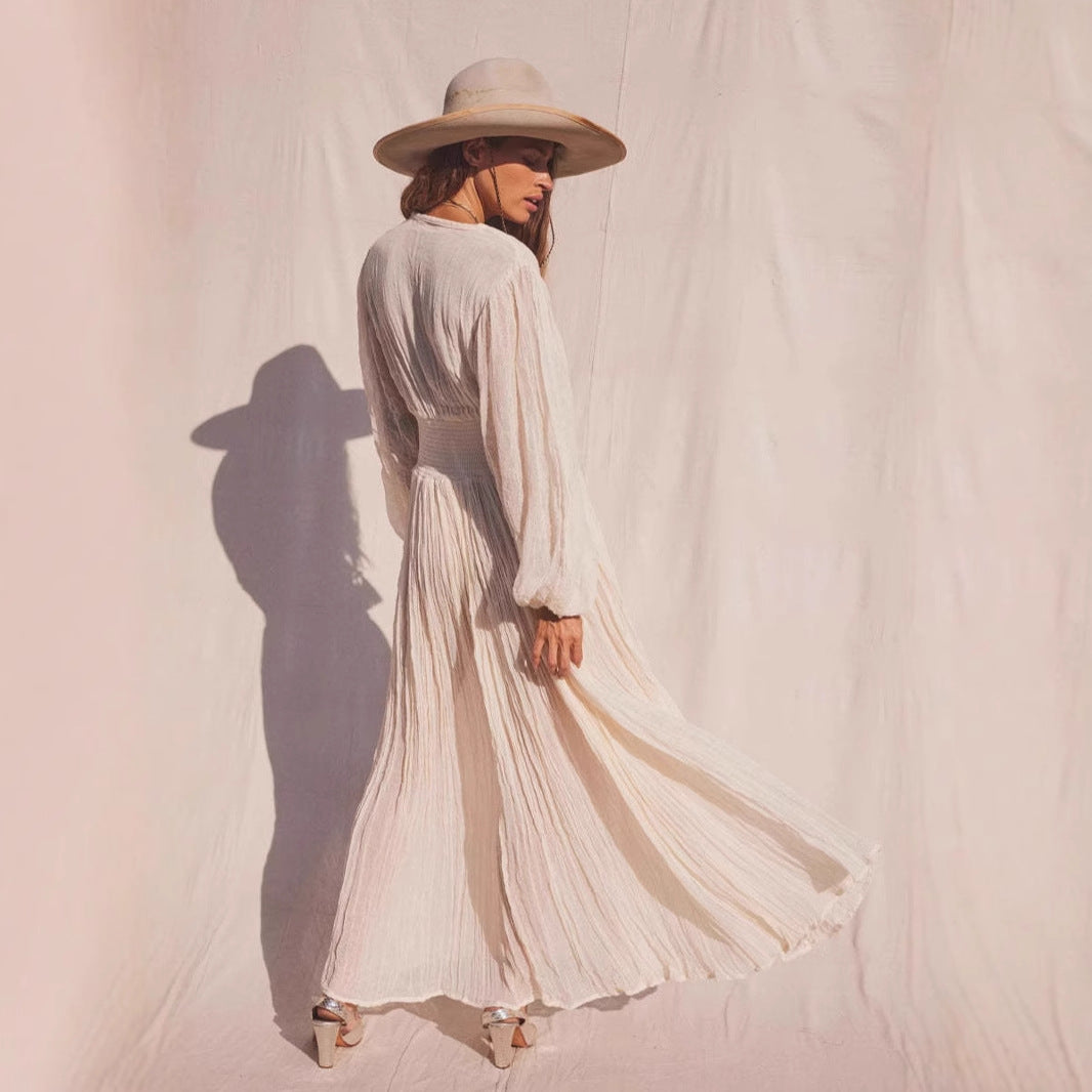 Women's Maxi Dress – V-Neck – Cotton Blend – Empire Waist – Boho Loose-Fitting Model