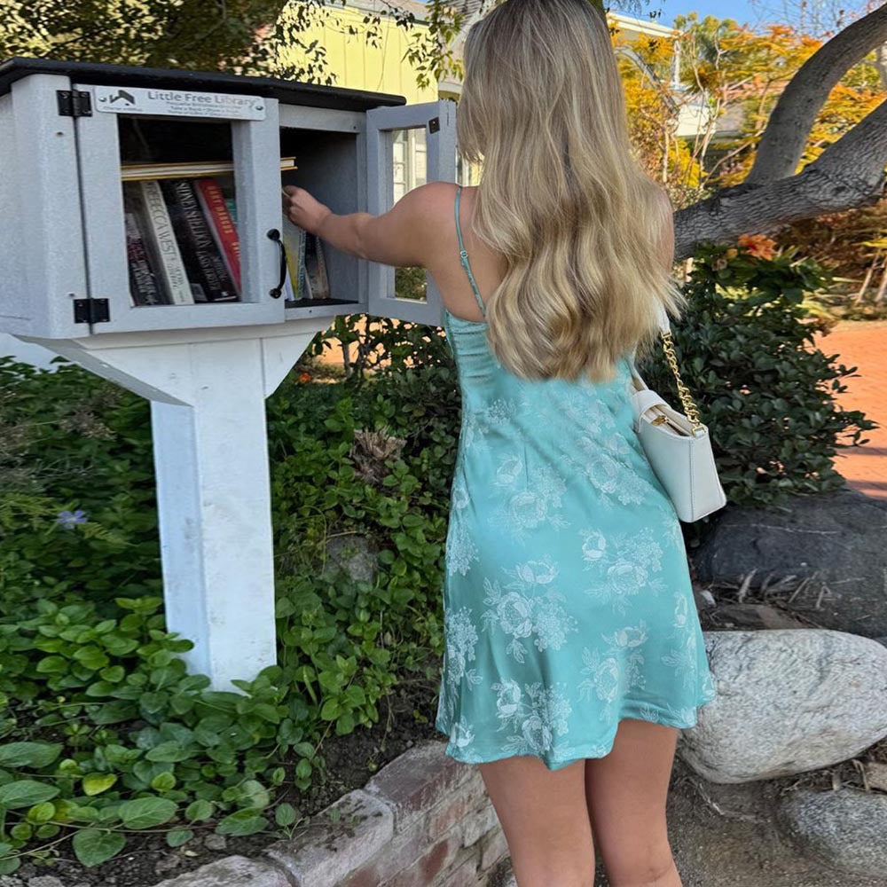 Women's Mini Dress – Satin Look – Slim Fit – Spaghetti Straps – Floral Pattern