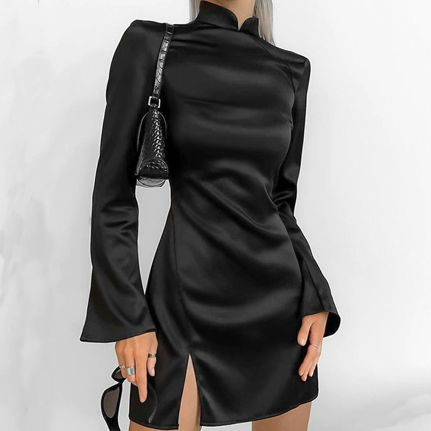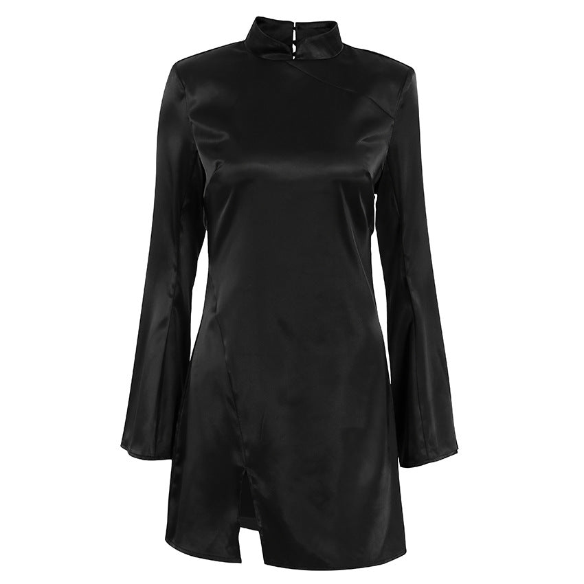 Women's Mini Dress – Satin – Tailored Fit – Stand Collar – Wide Sleeves