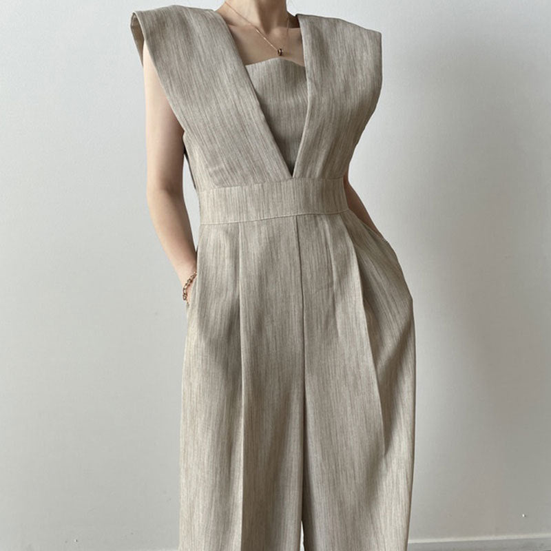 Ladies Jumpsuit – Sleeveless V-Neck – Elastic Waist – Wide Legs Elegant Model
